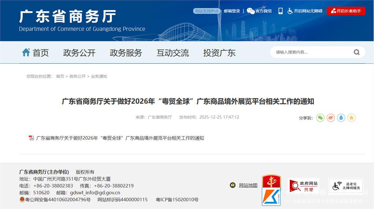 广东省商务厅关于做好2026年“粤贸全球”广东商品境外展览平台相关工作的通知