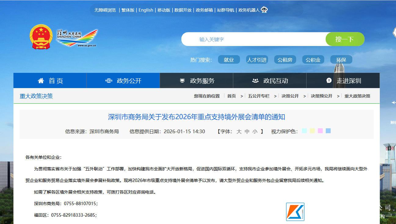 深圳市商务局关于发布2026年重点支持境外展会清单的通知