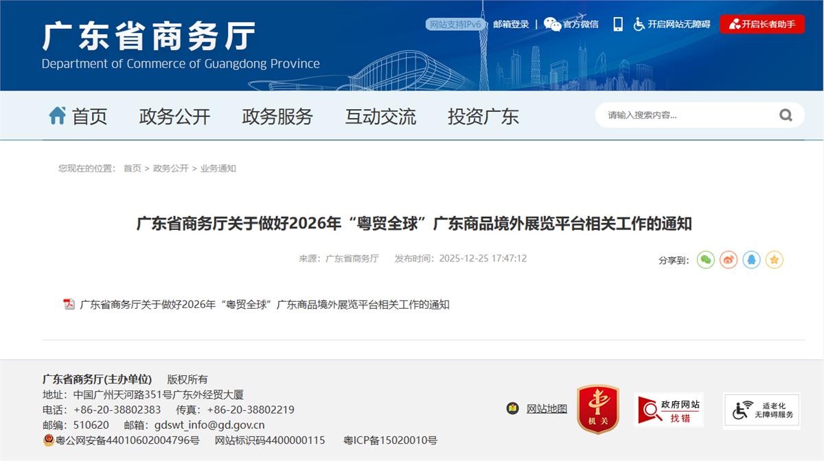 广东省商务厅关于做好2026年“粤贸全球”广东商品境外展览平台相关工作的通知