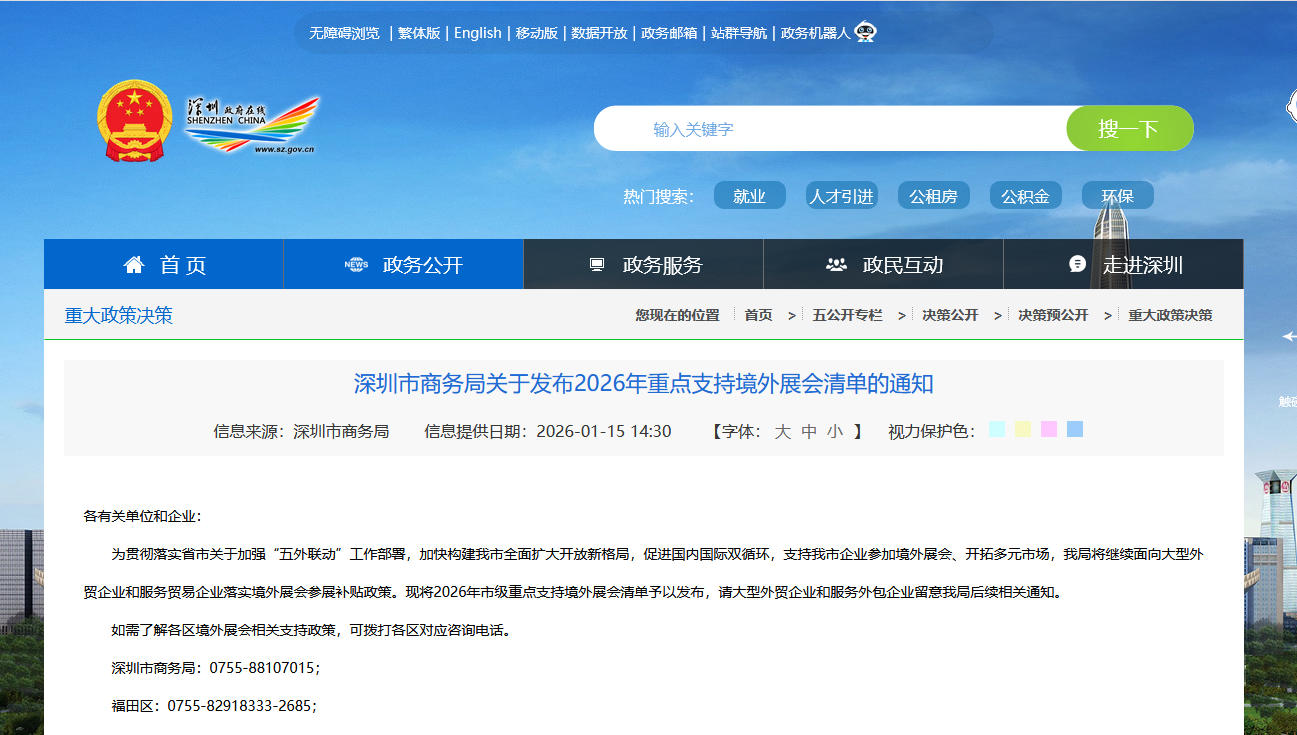 深圳市商务局关于发布2026年重点支持境外展会清单的通知